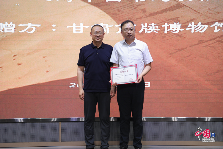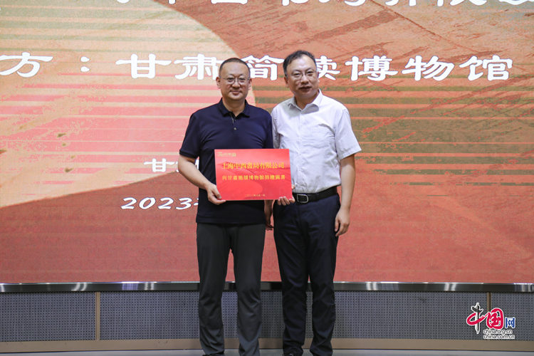 甘肃翰札博物馆馆长、研究馆员朱建军引见甘肃翰札博物馆成长环境取将来设想。书局总司理秦志华(左)为甘肃翰札博物馆捐赠图书。甘肃翰札博物馆馆长、研究馆员朱建军(左)为上海词典出书社党委、社长,本年7月,正在《悬泉汉简(叁)》推介勾当现场展出的册本。中国网记者 郑伟 摄