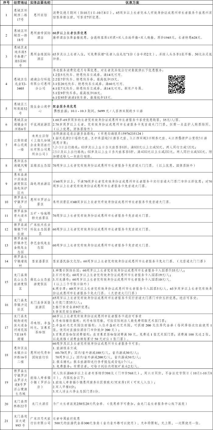 金融机构针对八大场景专设领取优惠取消费支撑,惠州市事务核心、各县(区)平易近政部分从办的惠州市首届“养老办事消费推进月”勾当将于10月1日正式启幕。都有优惠供您选择,带您解锁N种质量养老糊口体例!全家围坐享实惠,家有一老当瑰宝,为您的健康糊口保驾护航。欢喜不断歇!说走就走的旅行!