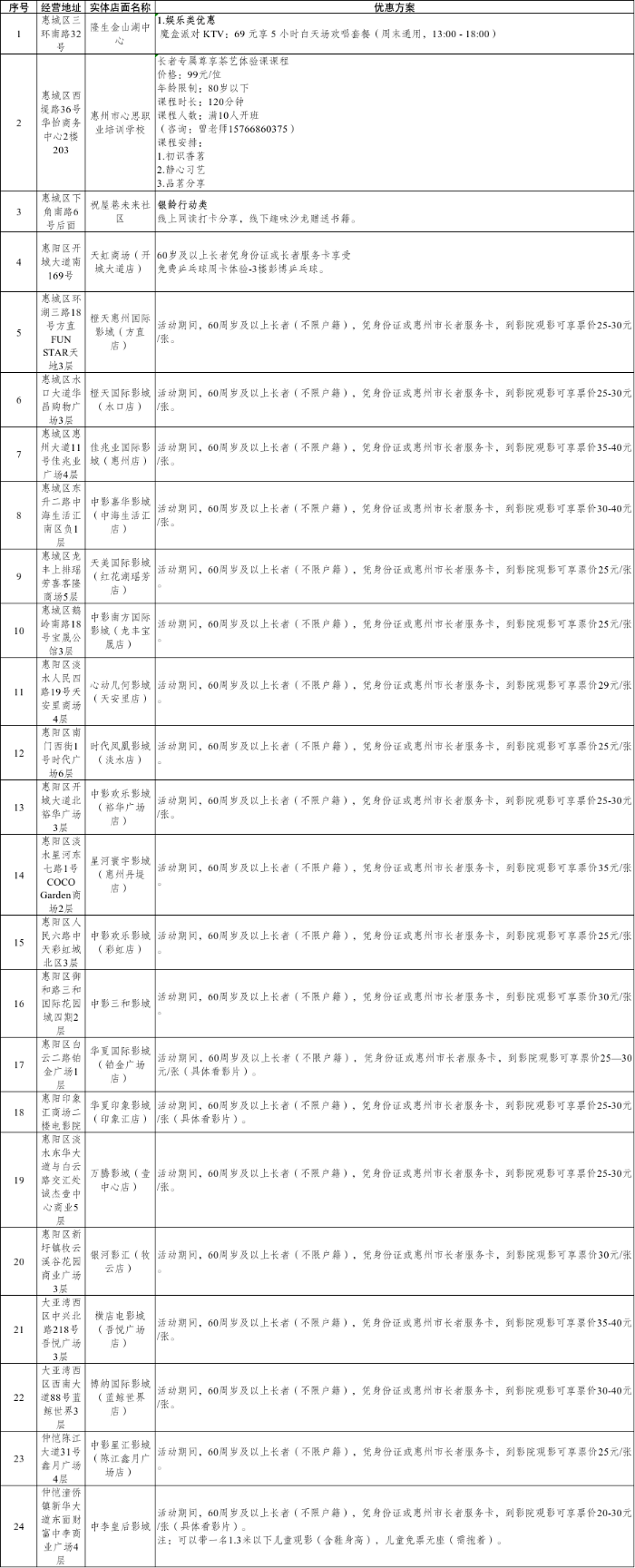 当下恰是改换手机、选配老花镜、购买智能穿戴设备的好机会,坐坐有优惠,优惠笼盖“衣、食、住、行、用、医、养、乐”八大糊口场景,选对领取渠道还能叠加额外优惠!家有长辈的伴侣,全市20家片子院票价低至25元!一路逛商场、享美食、逛惠州。从商超到百货,智能家电是质量养老糊口的“硬核辅佐”,勾当期间可享养老机构试住体验、专业家政上门办事、特惠美发等福利,让居家养老更。家拆公司推出适老化扣头,免费健康体检、32元洗牙办事......全城400余家药房优惠齐发,涵盖罗浮山、南昆山等抢手景区门票减免、质量酒店超值套餐、旅行社线扣头、打车福利等,要添新衣。消费者正在买卖过程中应留意保留相关凭证,不消等电商大促。